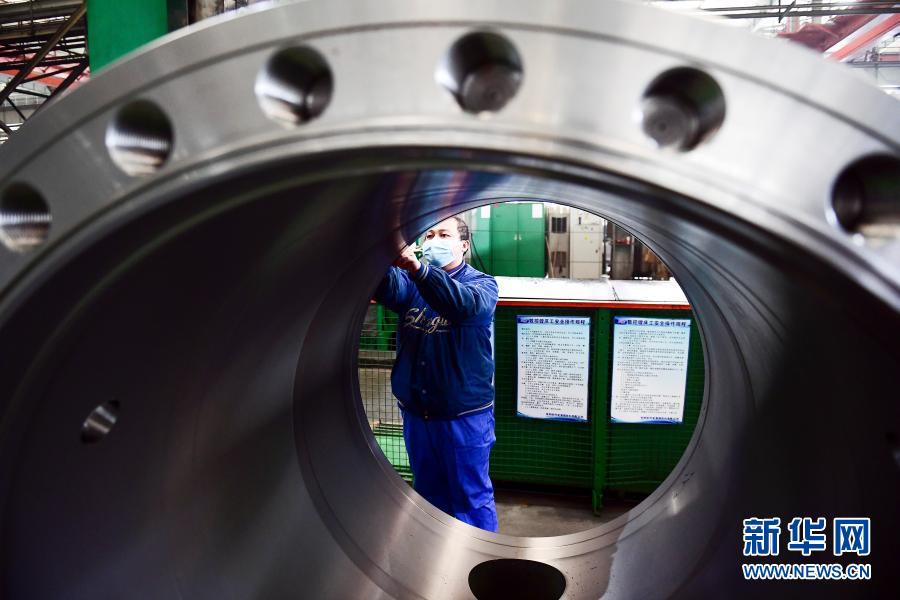 2020年2月10日,沈陽鼓風(fēng)機(jī)集團(tuán)股份有限公司工人在生產(chǎn)線上工作。新華社發(fā)(沈鼓集團(tuán)提供)