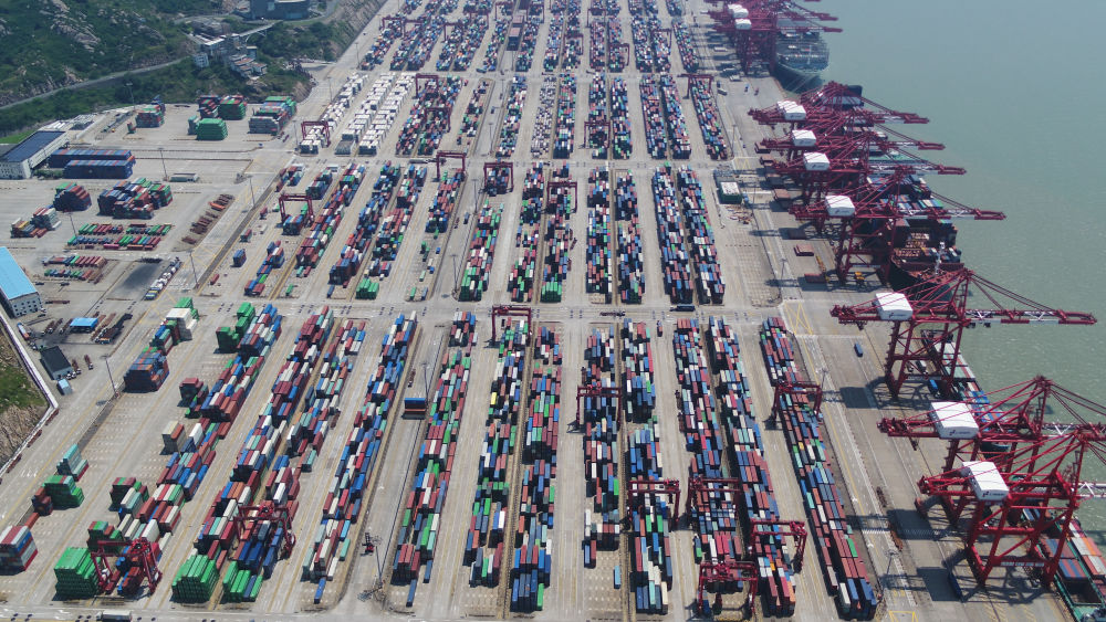 上海洋山港集裝箱碼頭(無人機(jī)照片)。新華社記者 丁汀 攝