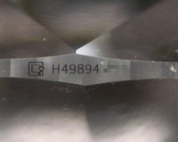 近日珠寶國檢(NGTC)北京實驗室接到一件物流散樣客戶送檢“鉆石”戒指,經綜合鑒定為實驗室培育鉆石。樣品的“特殊”之處在于這顆鉆石腰圍刻字既仿冒了珠寶國檢(NGTC)上海實驗室刻字(圖1)又仿冒了GIA刻字(圖2);圖3為珠寶國檢(NGTC)上海實驗室原刻字與仿冒刻字對比。編號H4989*的樣品為天然鉆石,凈度級別為VVS2,顏色級別為E,重量為1.10ct。