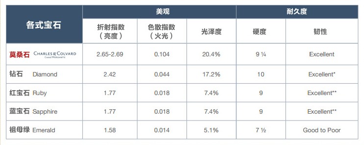 同時,莫桑石擁有9.25的摩氏硬度,僅低于南非鉆石,比其它寶石都高,高硬度使它不宜亂花和開裂,能永久保存下去。