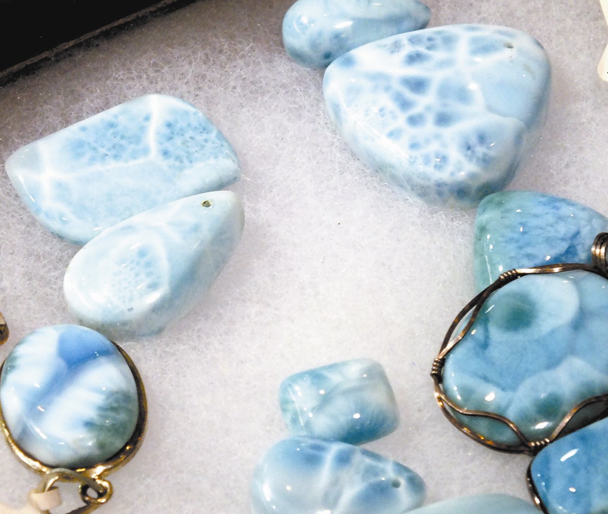 海紋石,有時也被人稱為“拉利瑪”或者“拉力瑪”。它不僅有著海洋般的藍色,還有惟妙惟肖的白色浪花。輕輕拿起,將其對準(zhǔn)太陽光線,抬頭仰望,只見它會微微透明,就像是潛入海水中仰望海面一樣,眼前是一片波光粼粼,給人以無限遐想。