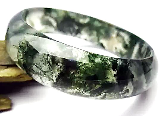 最早出現(xiàn)的水草瑪瑙手鐲表面凹凸不平,用手指就能感覺(jué)到其不光滑。那時(shí)候因?yàn)榧庸すに嚥桓?,再加上水草瑪瑙的料子不易雕琢,所以就略顯粗糙。這種水草瑪瑙手鐲目前在市場(chǎng)上是找不到的,因?yàn)槟甏眠h(yuǎn),大部分已被一些家庭用于祖?zhèn)骱笕?。隨著現(xiàn)代工藝的進(jìn)步,如今的水草瑪瑙表面必定是光滑如鏡。