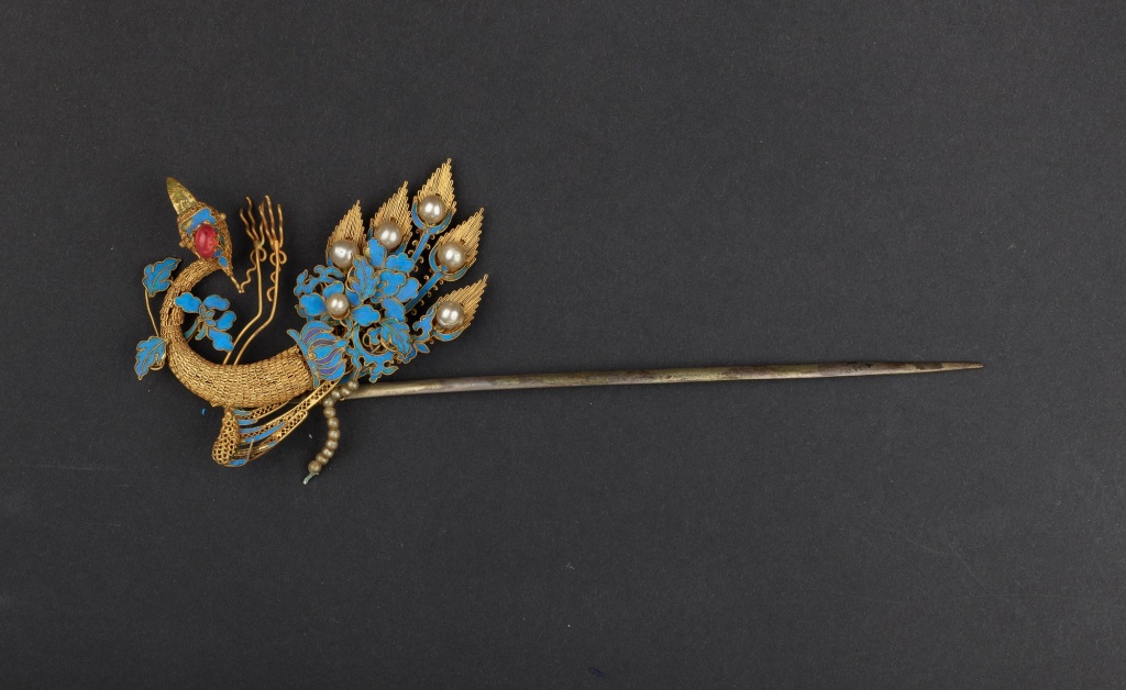 ——點(diǎn)翠嵌珠寶鎏金銀鳳簪