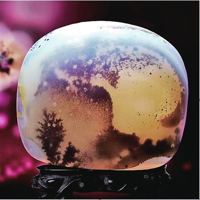 海洋玉髓融合了寶玉石和觀賞石的審美需求,既有寶玉石的質(zhì)地和色彩,又有神韻天成意境非凡的圖紋,集質(zhì)地美、色彩美、圖紋美、意境美等多方面美感于一身。