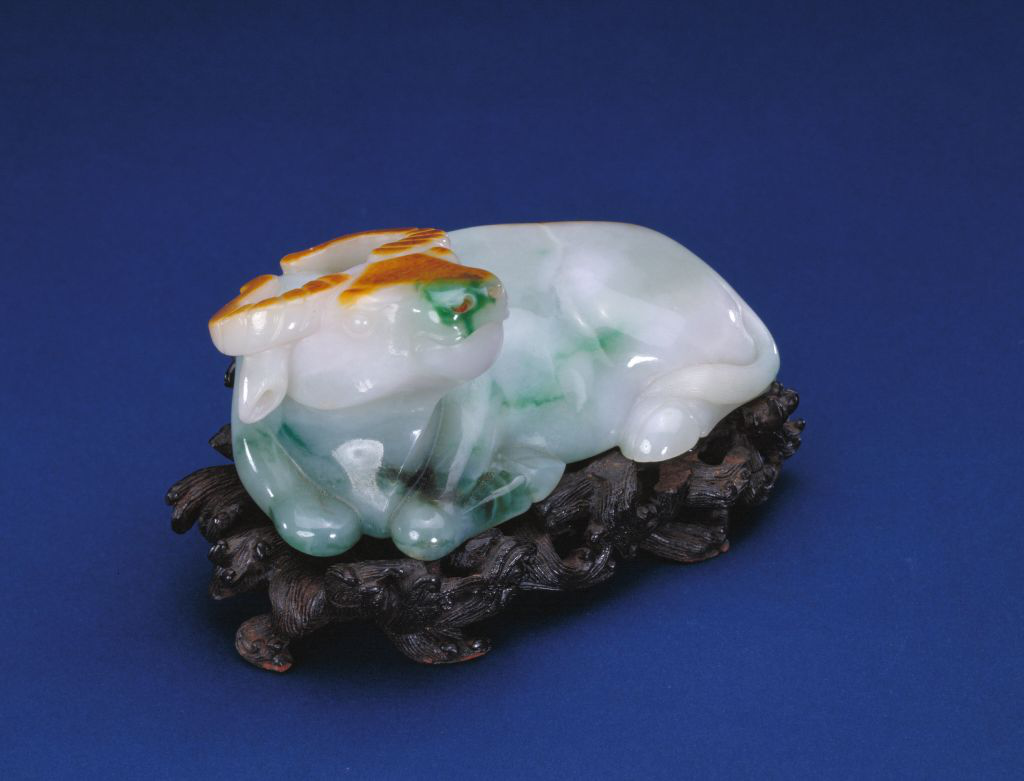 翠臥牛,清,高6.6厘米,長15.1厘米,寬7.7厘米