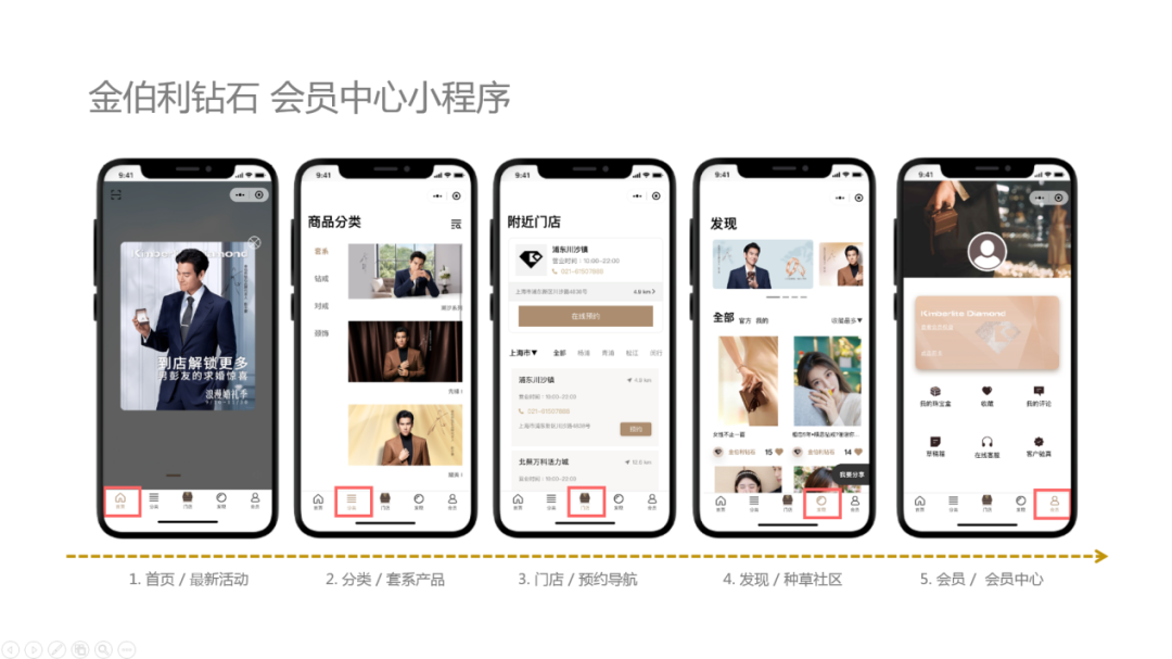 金伯利鉆石開設(shè)天貓官方旗艦店,實(shí)施線上線下不同產(chǎn)品線戰(zhàn)略,是金伯利鉆石發(fā)力信息化的另一個(gè)體現(xiàn)。同時(shí),金伯利鉆石借助客戶關(guān)系管理(CRM)會(huì)員服務(wù)系統(tǒng)、會(huì)員中心小程序、增強(qiáng)現(xiàn)實(shí)技術(shù)(AR)互動(dòng)營(yíng)銷等,為智慧新零售注入了更多活力。金伯利鉆石轉(zhuǎn)變了傳統(tǒng)線下新品認(rèn)證的復(fù)雜流程,實(shí)現(xiàn)線上一鍵新品驗(yàn)真、查詢產(chǎn)品證書、異地調(diào)換產(chǎn)品等難題,幫助消費(fèi)者和品牌門店輕松實(shí)現(xiàn)銷售場(chǎng)景轉(zhuǎn)化。金伯利鉆石的會(huì)員中心小程序?yàn)橄M(fèi)者提供了新品查詢、資訊和活動(dòng)分享等更多品牌特色服務(wù),整合多方信息一鍵送達(dá)消費(fèi)者。