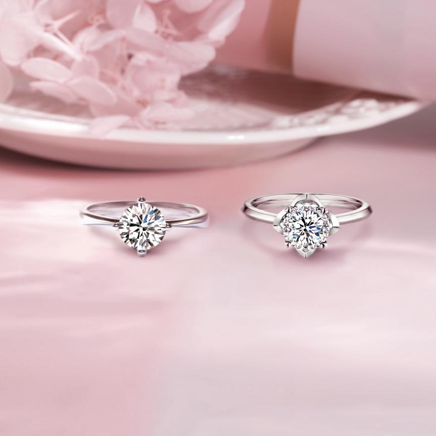 爪鑲工藝是用較長的金屬爪(或金屬柱)緊緊扣住寶石的鑲嵌方法。在當(dāng)代首飾中,爪鑲在鑲嵌顆粒較大的鉆石時較為常用,因?yàn)樗谧毷拿娣e很小,能最大化使光線通過寶石,從而最大程度地體現(xiàn)寶石的光學(xué)性質(zhì),讓寶石看上去晶瑩剔透、璀璨奪目。