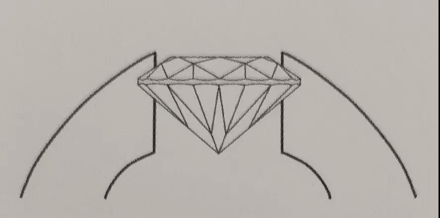 卡鑲。這種鑲嵌方式剛剛被發(fā)明時,也稱為“金屬張力鑲法”。利用金屬的張力固定寶石的腰部或者腰部與底尖的部分,是較為新潮的款式,卡鑲比爪鑲更能展示寶石的全貌。