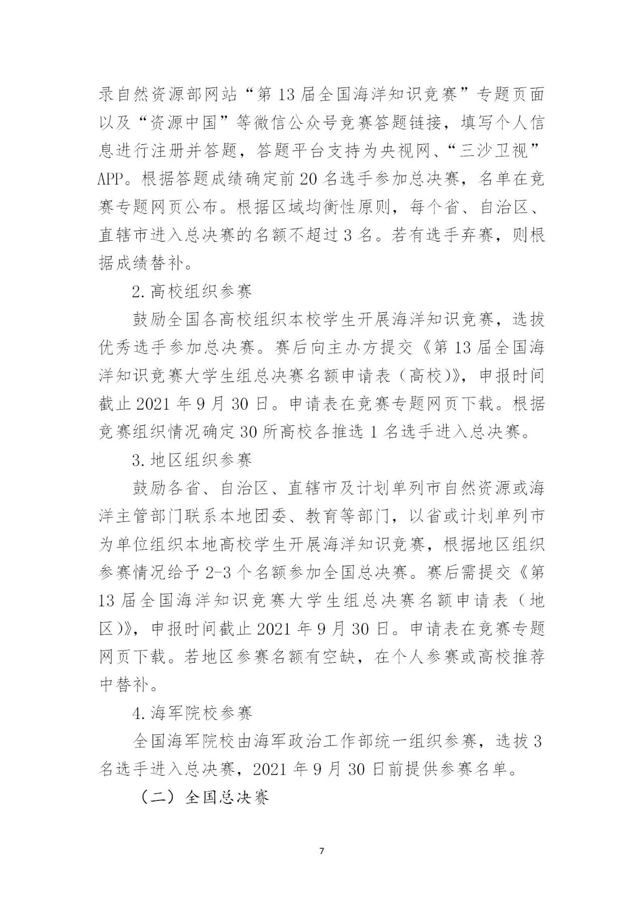 自然資源部辦公廳 共青團(tuán)中央辦公廳 海軍政治工作部宣傳局關(guān)于開展第13屆全國海洋知識(shí)競(jìng)賽活動(dòng)的通知