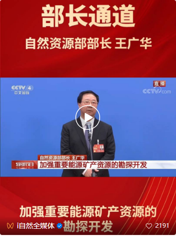 自然資源部部長王廣華在全國兩會“部長通道”答記者問