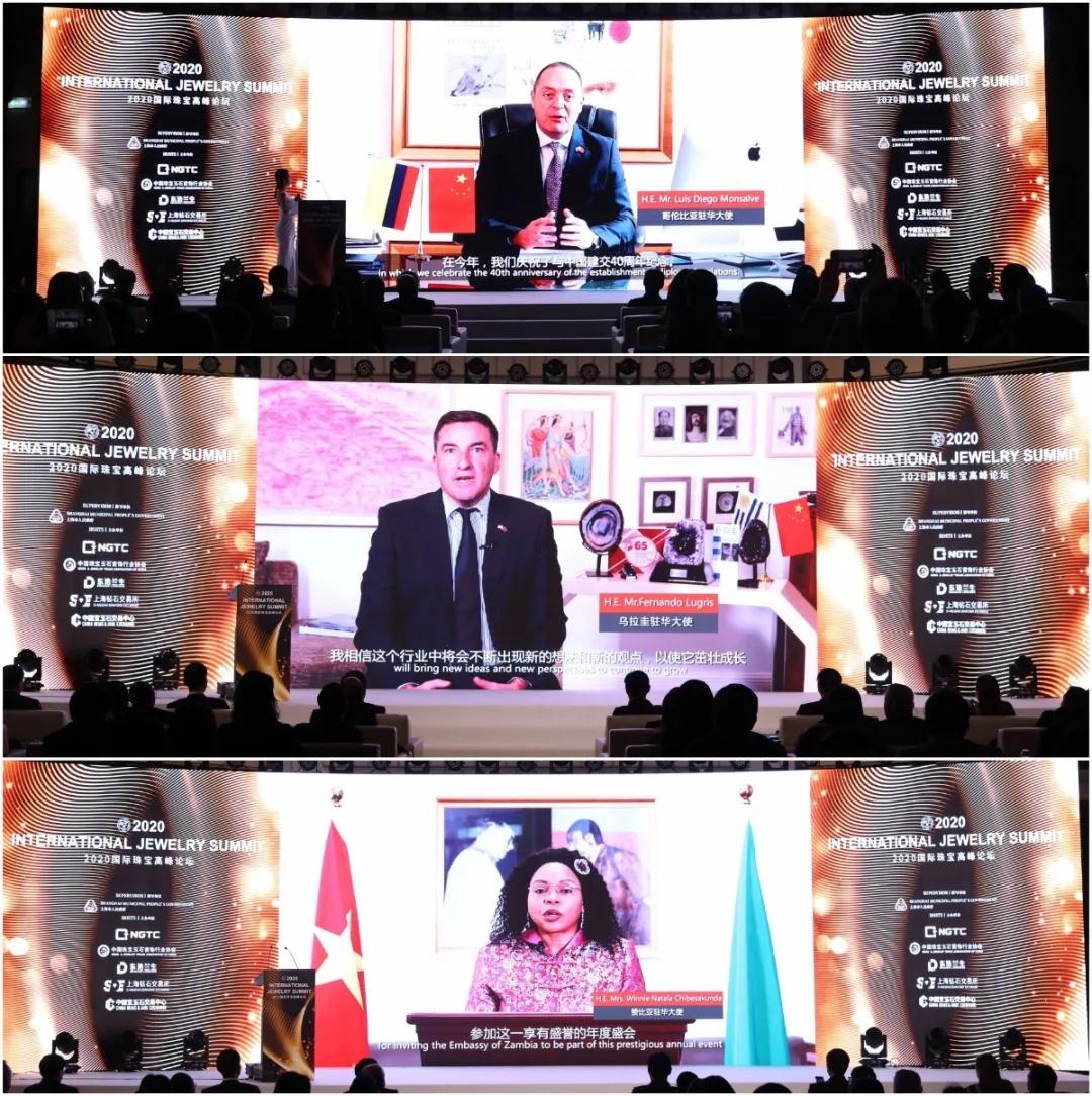 哥倫比亞駐華大使Luis Diego Monsalve、烏拉圭駐華大使Fernando Lugris、贊比亞駐華大使Winnie Natala Chibesakunda 通過視頻演講,表達(dá)了對(duì)第三屆進(jìn)博會(huì)及2020國際珠寶高峰論壇成功舉行的祝賀。