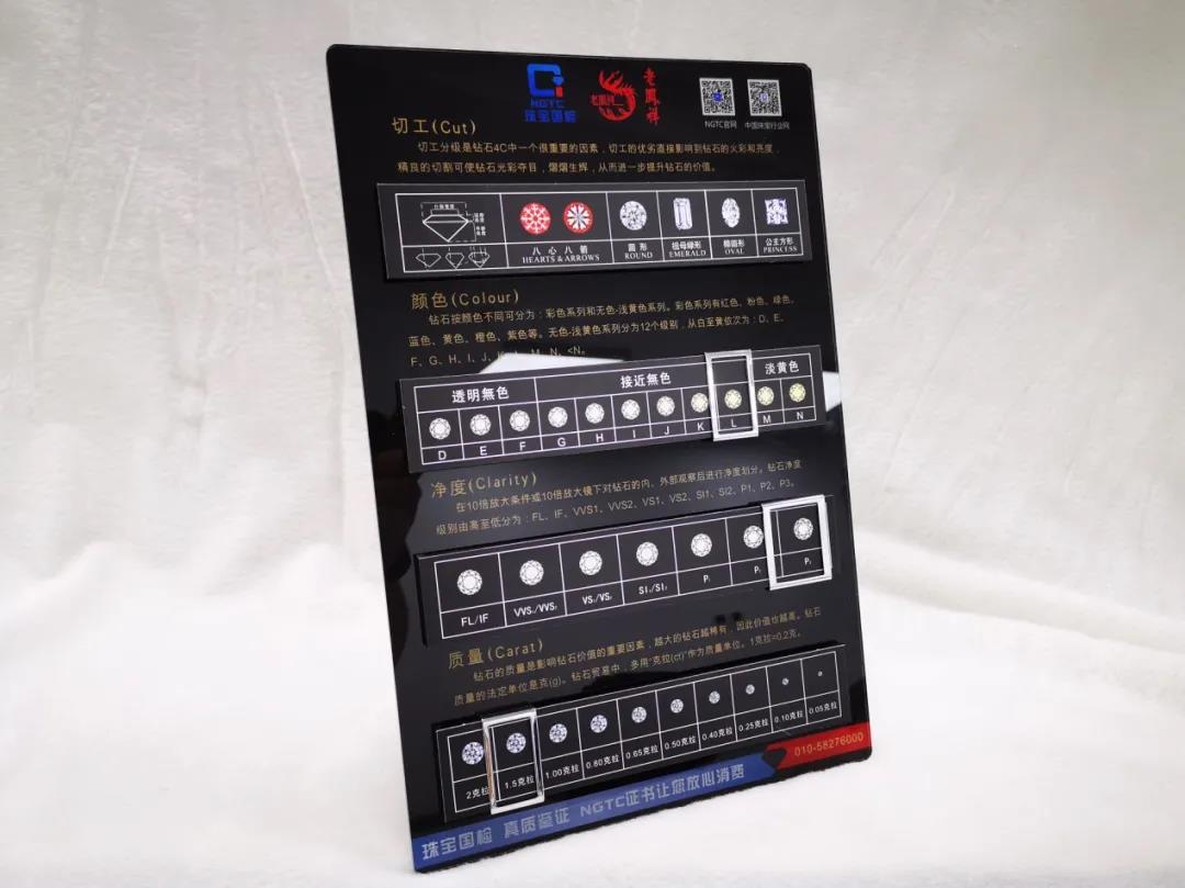 在“進(jìn)市場(chǎng)、訪企業(yè)”專(zhuān)項(xiàng)行動(dòng)中,珠寶國(guó)檢(NGTC)北京實(shí)驗(yàn)室和老鳳祥雙方聯(lián)名制作了國(guó)家標(biāo)準(zhǔn)解讀鉆石4C展示牌,覆蓋老鳳祥京冀地區(qū)全部門(mén)店,為維護(hù)消費(fèi)者的合法權(quán)益貢獻(xiàn)力量。