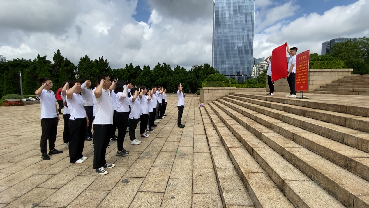 活動(dòng)當(dāng)天,大家首先瞻仰了深圳革命烈士紀(jì)念碑,碑身四面鐫刻著“革命烈士永垂不朽”八個(gè)大字,由當(dāng)年?yáng)|江縱隊(duì)司令員曾生同志書(shū)寫(xiě),烈士紀(jì)念碑碑座的北面浮雕是銅鑄碑文;西面浮雕反映抗日戰(zhàn)爭(zhēng)的壯烈場(chǎng)面;東面浮雕反映中國(guó)共產(chǎn)黨營(yíng)救淪陷在香港的進(jìn)步愛(ài)國(guó)人士和國(guó)際友人的斗爭(zhēng)場(chǎng)面;南面浮雕反映解放戰(zhàn)爭(zhēng)的場(chǎng)景,莊嚴(yán)肅穆。之后,全體人員在革命烈士紀(jì)念碑前肅立默哀并三鞠躬,敬獻(xiàn)白菊花,向長(zhǎng)眠于此的革命先烈表達(dá)深切的哀悼,致以崇高的敬意。最后,在黨支部書(shū)記崔向超同志的帶領(lǐng)下,同志們面向鮮紅的黨旗,重溫入黨誓詞。鏗鏘有力、擲地有聲的80字入黨誓詞,時(shí)刻提醒著同志們牢記入黨初心,恪守入黨承諾,踐行黨的宗旨,始終堅(jiān)定為中國(guó)特色社會(huì)主義偉大事業(yè)奮斗終身的決心。