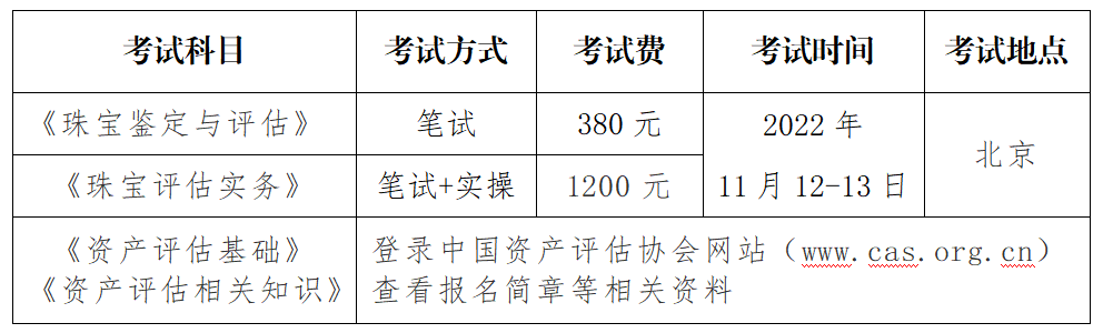 2022年資產(chǎn)評估師(珠寶)職業(yè)資格全國統(tǒng)一考試珠寶評估專業(yè)科目報(bào)名簡章
