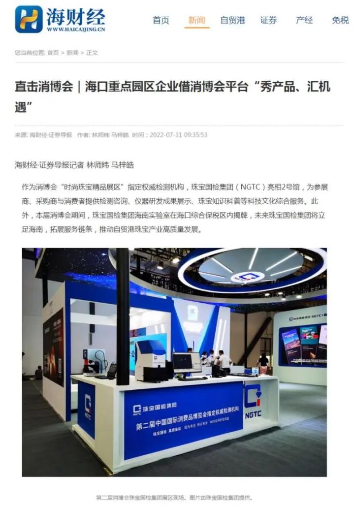 第二屆中國國際消費(fèi)品博覽會(huì)媒體集中報(bào)道,為珠寶國檢集團(tuán)科技服務(wù)點(diǎn)贊