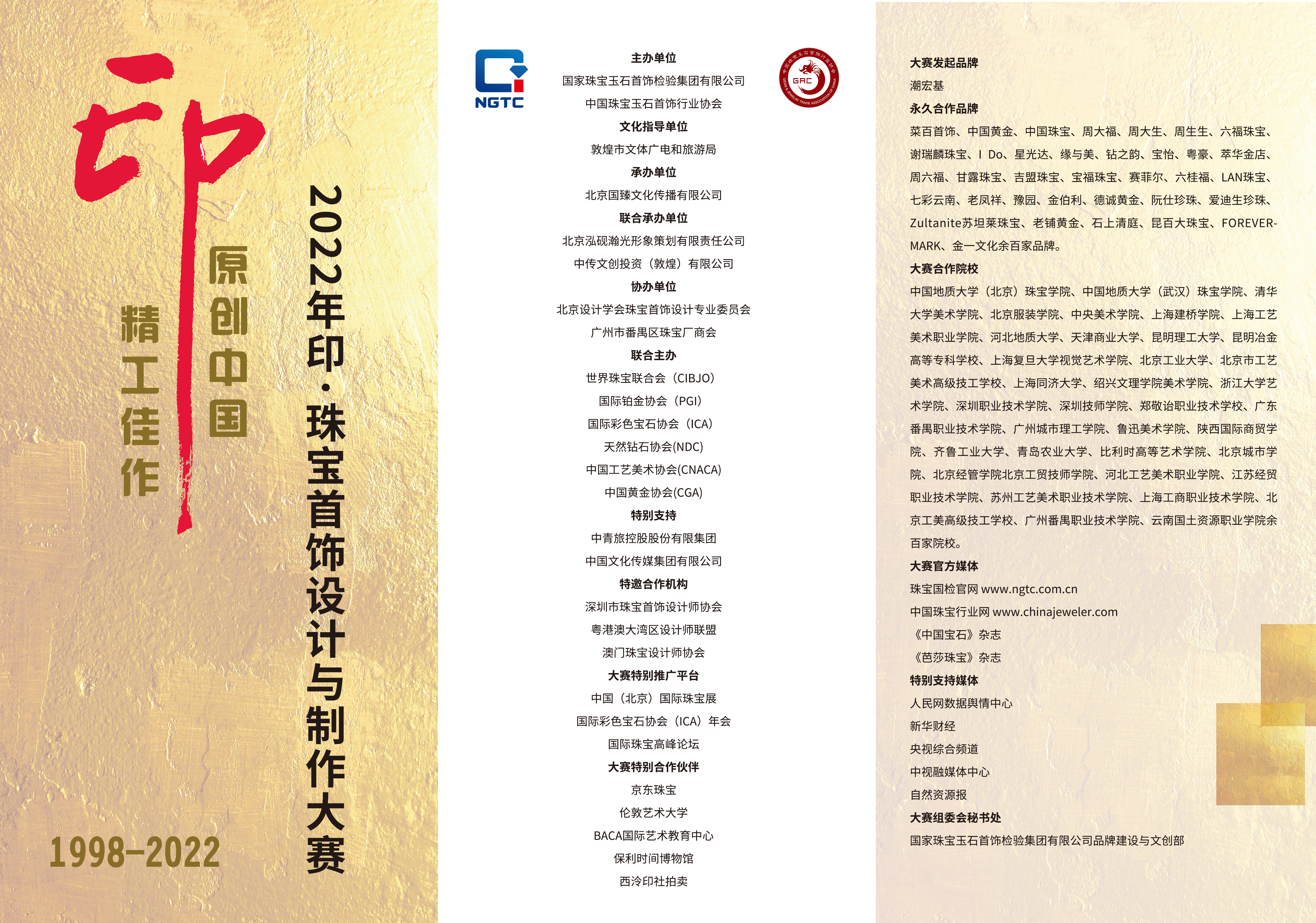 1998年,由珠寶國(guó)檢和中寶協(xié)聯(lián)合主辦,潮宏基品牌冠名,周大福、菜百、老鳳祥等零售品牌和全國(guó)高校積極參與的設(shè)計(jì)大賽,開(kāi)創(chuàng)了行業(yè)有組織的發(fā)現(xiàn)、培育、推廣中國(guó)原創(chuàng)設(shè)計(jì)和設(shè)計(jì)師的先河。2007年,仍由珠寶國(guó)檢和中寶協(xié)聯(lián)合主辦,寶怡、星光達(dá)、緣與美、周大生等25家制造業(yè)和零售業(yè)頭部品牌發(fā)起,由人力資源和社會(huì)保障部相關(guān)部門(mén)批準(zhǔn)的制作大賽(國(guó)家賽),開(kāi)啟了在珠寶首飾制造行業(yè)培育大國(guó)工匠的序幕。2012年,設(shè)計(jì)大賽和制作大賽合并,以“印”為大賽永恒主題。