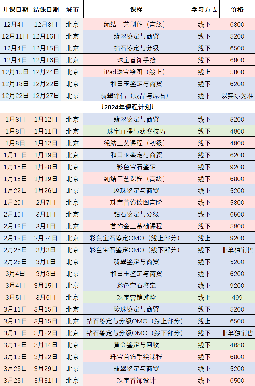 【珠寶國(guó)檢集團(tuán)培訓(xùn)中心開課計(jì)劃】2024年第一季度北京課程計(jì)劃來啦!