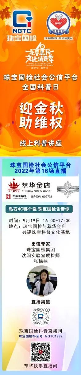 ?【2022珠寶國檢社會(huì)公信平臺系列科普直播十六】迎金秋 助維權(quán)