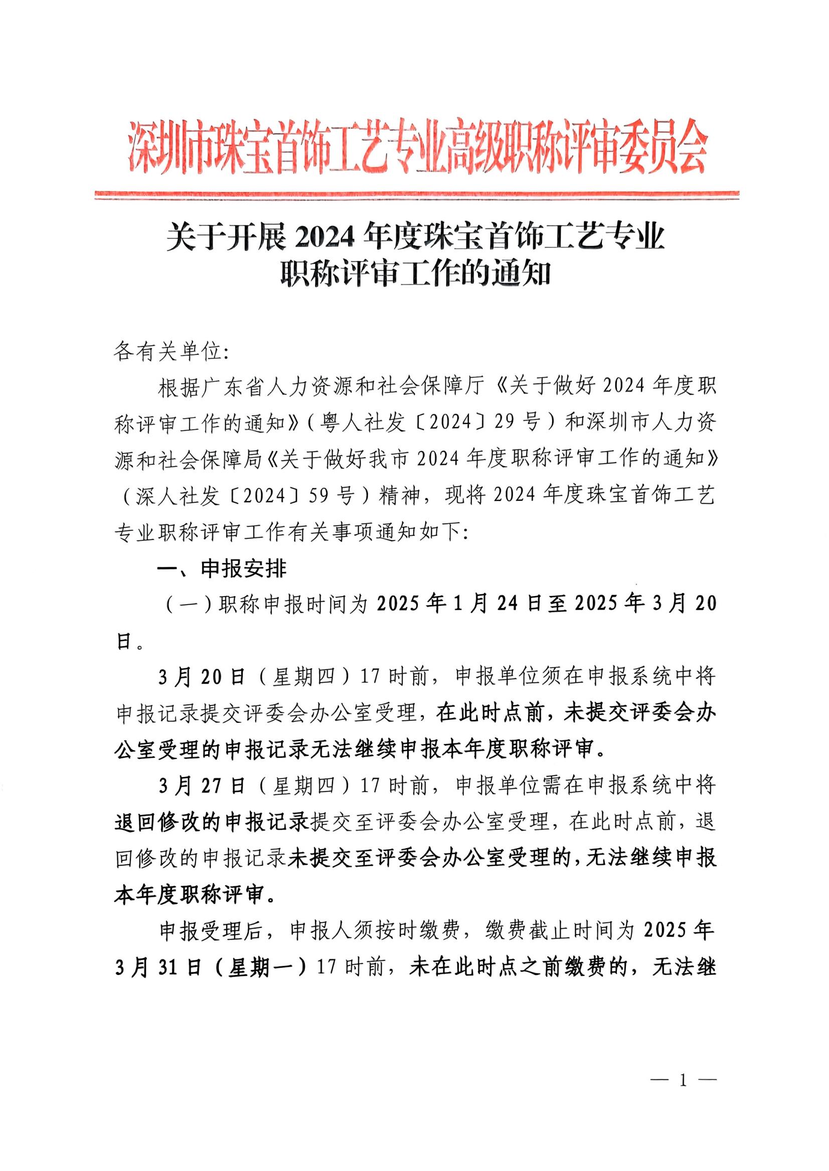 關(guān)于開展2024年度珠寶首飾工藝專業(yè)職稱評審工作的通知