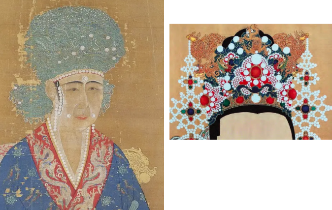 在宋仁宗皇后的畫像里,白色的珍珠在她的冠飾和面部裝飾中都處在顯著位置,可見當(dāng)時(shí)流行用珍珠來襯托貴族女性高貴的身份、高尚的品格和優(yōu)美的女性感,也可見在當(dāng)時(shí)珍珠代表著一種時(shí)尚。