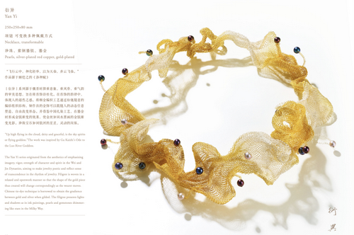 在《衍異》系列作品里,我大量采用了這樣的彈簧絲,并綴上中國養(yǎng)殖的珍珠,這種珍珠具有非常豐富的顏色,營造了出彩的視覺感。