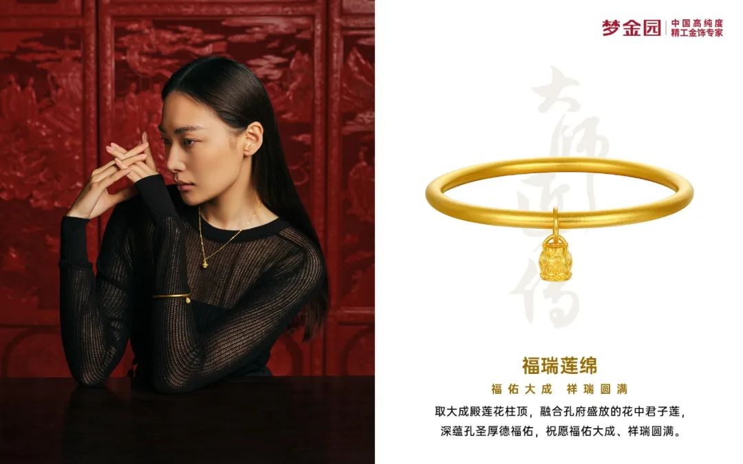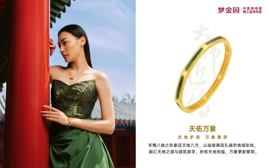 當日,夢金園黃金珠寶品牌代言人江疏影佩戴“大師匠傳”系列黃金飾品——“玲瓏慧心”項鏈、耳飾,搭配“天佑萬象”手鐲亮相,詮釋經典優(yōu)雅與現(xiàn)代時尚。據(jù)介紹,這套金飾設計靈感源自孔廟大成殿的八棱石柱,采用千年非遺技藝——花絲與點鉆工藝匠制,同時通過琺瑯工藝再現(xiàn)孔廟的青綠彩繪,既表達了對于歲月靜好的探尋,又祈佑萬象更新的繁榮。