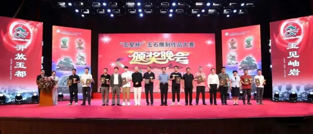 當日下午,2023第十三屆“玉星杯”玉石雕刻作品大賽頒獎典禮在岫巖會堂正式舉行。中寶協(xié)原會長徐德明,中寶協(xié)會長葉志斌,中寶協(xié)副會長、秘書長畢立君,人民藝術家郭冬臨,岫巖滿族自治縣人大常委會主任趙德君,岫巖滿族自治縣政協(xié)主席孔華為獲得金獎的作品頒獎。